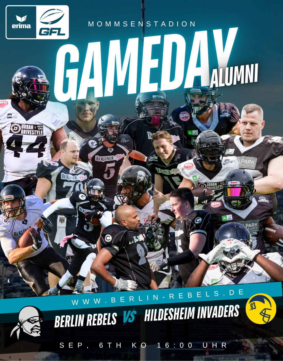 Am 06.09.2025 laden wir alle ehemaligen Spieler der Berlin Rebels aus den letzten 38 Jahren zu uns ins Mommsenstadion ein!