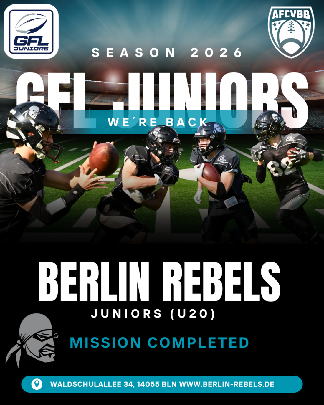 Die U20 der Berlin Rebels wird in der Saison 2026 nun doch in der GFL Juniors antreten.