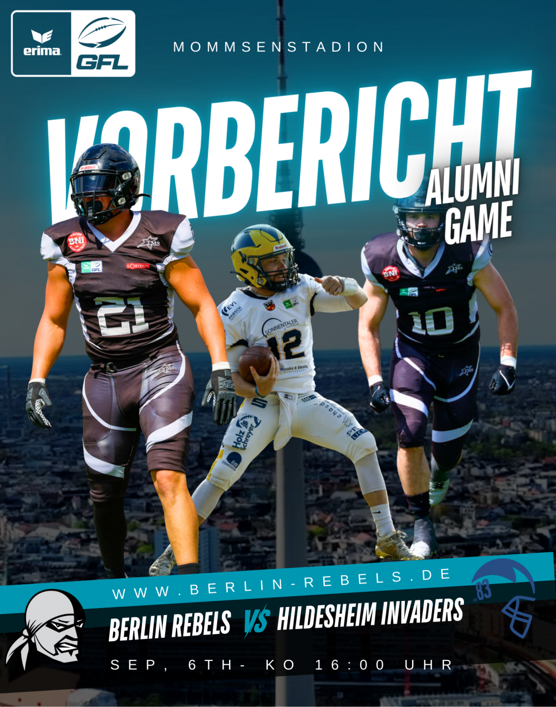 Am 06.09.25 laden die Berlin Rebels zum letzten Heimspiel der Saison 2025 ins Mommsenstadion ein.