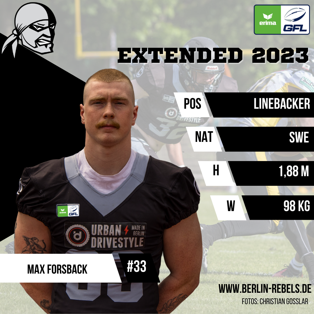 LB Max Forsback wird auch 2023 für die Berlin Rebels auflaufen.
